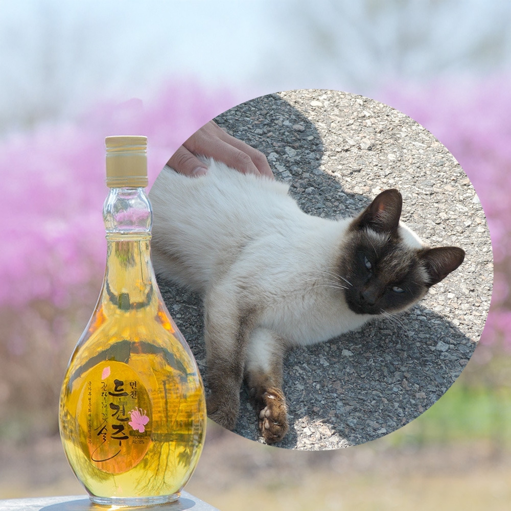기호 2번 : 진달래꽃에서 나타난 면천두견주 고양이
