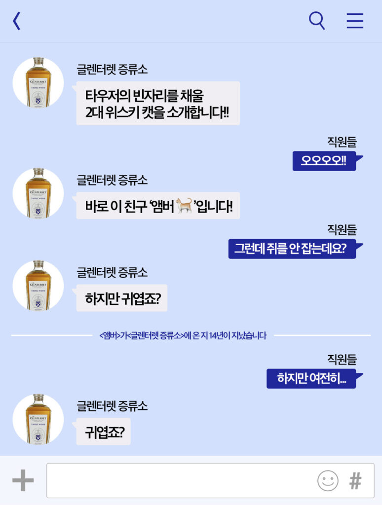 위스키 회사 고양이 다 있고 나만 없어