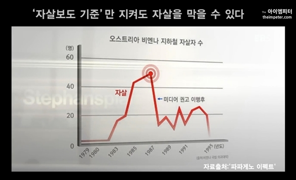 또 1980년대에는 오스트리아의 지하철 자살률이 갑자기 급증했습니다. 학자들은 자살률이 높아진 이유가 미디어가 자살 사건을 상세히 보도했기 때문이라고 판단했습니다. 1987년 지하철 자살에 대한 보도 권고안이 도입됐고 언론사들이 이를 따르자 지하철 자살률이 줄어들었습니다.