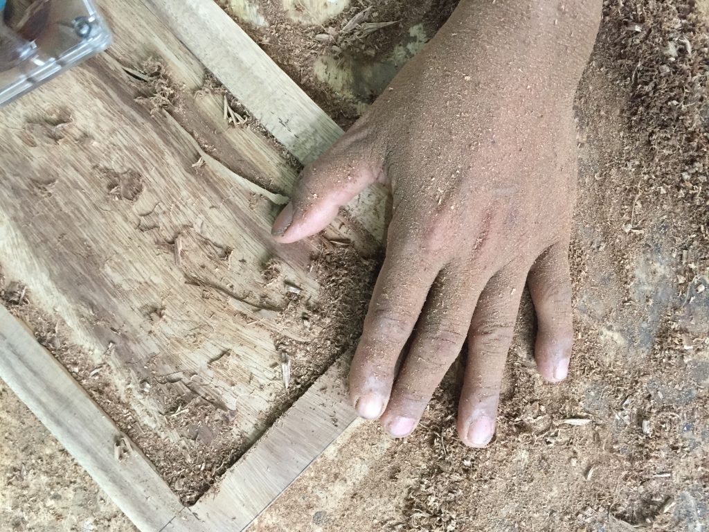 ‘시간의 결’이란 제품 시리즈는 마호가니 통원목을 깎은 볼에 코코넛 껍질을 하나하나 붙여 만들었습니다. 붙이고 표면을 매끄럽게 하기 위해 샌딩 하는 과정이 지난한 시간을 필요로 하지만 덕분에 독특함을 자랑합니다.