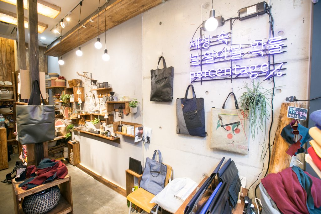 “공정무역끼리만 모이는 것이 아니라 사회적 가치도 다르고 개성도 강한 다른 업체들이 모여 새로운 판이나 그림을 만들고 싶었어요. 퍼센티지는 그런 곳입니다. 단지 판매장소만 공유하는 것이 아니고, 서로의 장점을 버무려 콜라보제품을 만들기도 하고 캠페인도 벌입니다.”