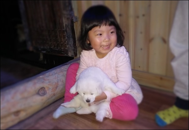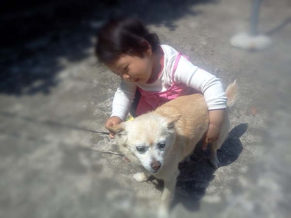 처음에는 사람을 경계하며 숨기만 했던 초롱이는 딸 아이가 자라는 세월 내내 곁에 있었습니다. 아장아장 걸어 다닐 때는 묵묵히 같이 걸었고, 짓궃은 장난을 쳐도 짖지 않고 묵묵히 놀아줬습니다. 그런 초롱이를 위해 딸 아이는 자기 간식을 엄마 몰래 나눠주기도 했습니다.