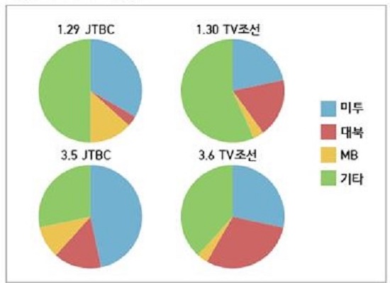 또 다른 종편인 TV조선은 어떨까. TV조선은 대표적인 기득권 매체다. 수구 매체의 타깃은 기성세대이며 그들을 TV 앞으로 불러내기 위해 TV조선은 그들 안의 뿌리 깊은 레드 콤플렉스를 건드린다. 정파성을 자극하는 것이다. 수구 매체가 정파적으로 사안을 다루는 방법 중 하나는 좌파의 도덕성에 흠집을 내는 것이다.