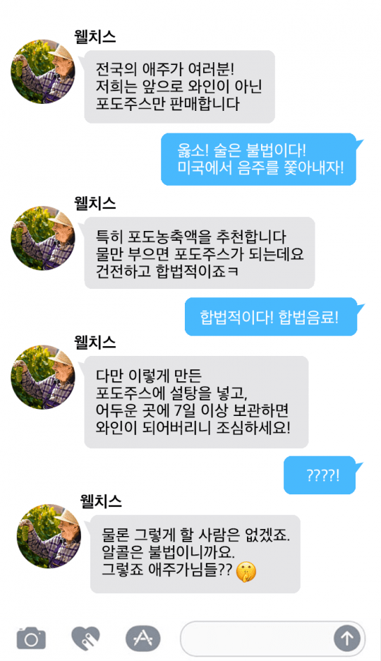 미국 내의 많은 포도농장은 문을 닫았다. 살아 있는 포도농장은 이제 와인 대신 포도 주스를 만들었다. 우리가 잘 아는 웰치스(Welchs)도 이 시대에 만들어졌다. 그들은 포도 주스, 포도 농축액, 포도 블럭 같은 엑기스를 판매했다. 이 건전하고 합법적인 음료에는 다음과 같은 경고문이 붙었다.