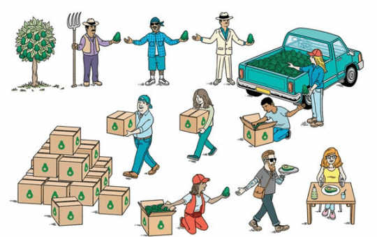2016년 미국 아보카도 수입 업체들과 멕시코 아보카도 생산 업체들을 대상으로 한 연구 조사에 따르면, 아보카도 공급망이 성장하면서 미국 내에 약 19,000개의 일자리가 창출되었고, 국민 총생산(GNP) 또한 22억 달러 증가로 이어졌습니다.