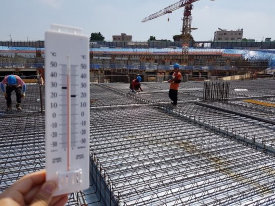 8월 2일 경기도 수원시 권선구의 한 자동차매매단지 공사현장. 지하 4층·지상 6층 규모의 대형 자동차판매시설이 들어설 이곳은 아직 골조와 바닥 등 기초공사 중이라 그늘 한 점 찾기가 어려웠다. 이날 기상청이 발표한 수원 최고기온은 섭씨 38.1도(℃). 하지만 현장 관리사무소에 비치된 온도계는 오전 11시를 갓 넘긴 시각 이미 40℃를 가리켰다.