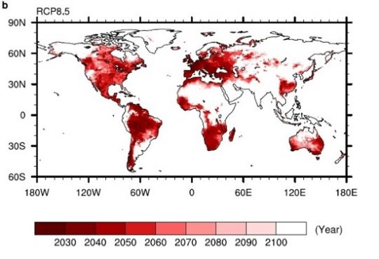 기후변화 혹은 지구온난화는 대기 중 온실가스 농도가 증가하면서 지표면에 도달한 태양열이 우주로 잘 빠져나가지 못해 발생한다. 지난해 7월 미국 하와이대학교 카밀로 모라(43) 교수팀은 과학 학술지 《네이처 기후변화(Nature climate change)》에 기고한 「치명적 열의 글로벌 위험(Global risk of deadly heat)」에서 “현재 전 세계 인구 중 30%가 1년에 최소 20일 이상 죽음에 이를 수 있는 폭염에 노출돼 있다”고 분석했다. 이 논문은 지금처럼 온실가스가 계속 배출될 경우 2100년에는 이 비율이 74%까지 올라갈 것이라고 예측했다.