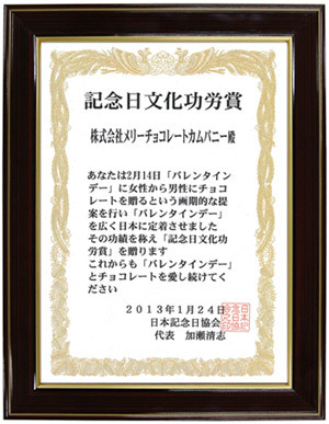・메리 초콜릿: 1958년에 발렌타인 초콜릿을 만든 것을 최초로 보는 의견. "여성이 남성에게 초콜릿을 준다"는 개념까지 명확하게 만들었고, 이후 발렌타인 데이 초콜릿의 형태가 대부분 메리 초콜릿의 판촉 행사를 본뜬 것이기 때문에 현대적인 의미의 원조로 인정하고 있음. 현재로서는 공인된 원조는 이곳.