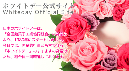 이런 붐을 하나의 문화로 정착시키자는 취지에서 일본의 '전국엿과자공업협동조합(全国飴菓子工業協同組合)'에서 공식적으로 1980년 3월14일을 기점으로 '화이트 데이'를 만들게 됩니다. 전국엿과자공업협동조합에서는 화이트데이의 유래에 대해서는 병사의 자유결혼금지정책을 어기고 결혼하려고 했던 남녀를 구하기 위해 발렌티누스 사제가 순교하고, 그 후 3월14일에 그 커플이 영원한 사랑을 약속했다는데 의미를 둔다고 설명을 합니다.