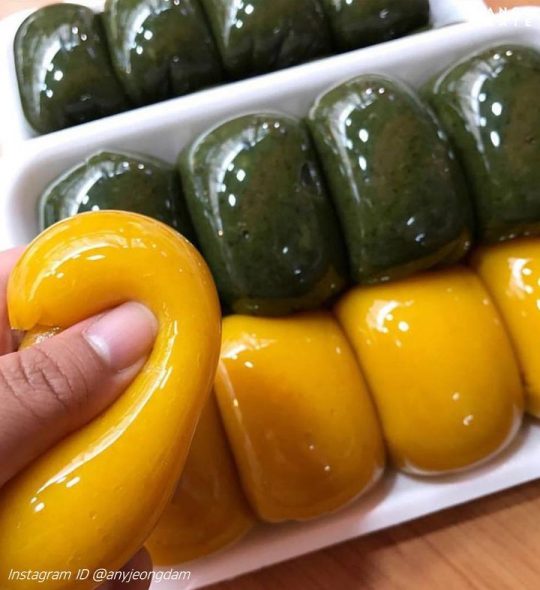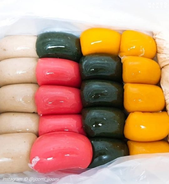 호박, 쑥, 딸기, 현미 알록달록한 사색 인절미. 콩고물을 따로 묻혀 먹는 스타일인데요! 소포장 되어있어 간식으로 하나씩 먹기에도 딱! 귀여운 사탕을 닮은 캔디 떡도 인기! 안에는 팥 앙금과 고소한 견과류로 꽉 차 있어 달콤함에 씹는 식감까지 더했어요. 카톡과 홈페이지에서 택배 주문이 가능하답니다. ☞ 솔직한 리뷰 보러가기!