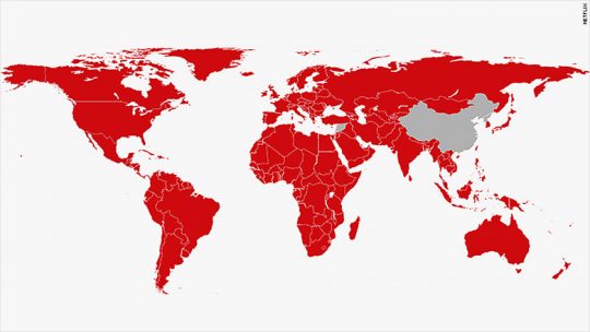 넷플릭스(Netflix)가 성공한 가장 큰 요인은 사업을 전 세계로 확장한 것이다. 2017년 190개국 이상에서 사업을 영위하며, 약 1억 3,000만의 가입자 중 7,300만이 미국 이외의 국가에 산다. 2018년 2분기 처음으로 해외 스트리밍 매출이 미국 내 스트리밍 매출을 넘어섰다.