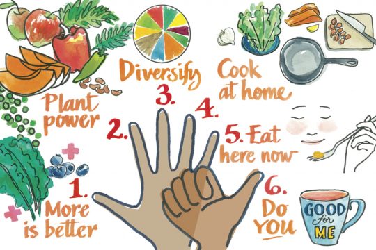 건강을 지키기 위해서는 ‘건강한 식사’(healthy eating)를 하는 것이 좋다. ‘건강한 식사’란, 패스트푸드나 탄산음료 같은 몸에 해로운 음식을 삼가고 대신에 과일과 채소, 유기농 식품 등을 위주로 균형 잡힌 식사를 하는 것을 말한다.