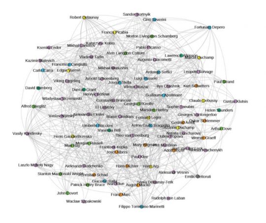2012년 뉴욕의 MoMA에서 개최된 〈추상의 태동: 1910-1925〉 기획전에는 전통적인 재현주의 예술을 탈피했던 80명의 예술가를 한자리에 모으고 이들의 친분 관계를 조사했다고 한다. 당시 큐레이터였던 레아 디커만(Leah Dickerman)은 콜롬비아비즈니스대학에서 네트워킹 관계학을 지도하는 폴 인그람(Paul Ingram) 교수와 함께 이를 탐색했다.
