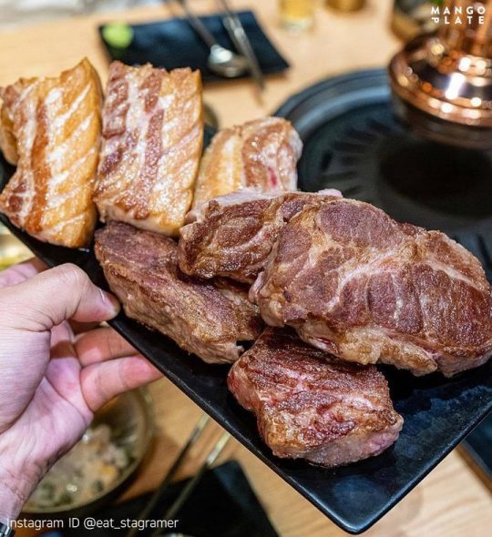 이시언과 절친이라는 비가 만나서 즐긴 고깃집. 이곳은 밥블레스유에서 이영자가 추천한 고기 맛집이기도 한데요! 고기를 506시간 숙성시켰다는 이곳의 숙성돼지고기는 응축된 것 같이 진한 육즙과 육향이 특징이에요. 불판에 볶아먹는 크림 볶음밥으로 마무리도 잊지 마세요!