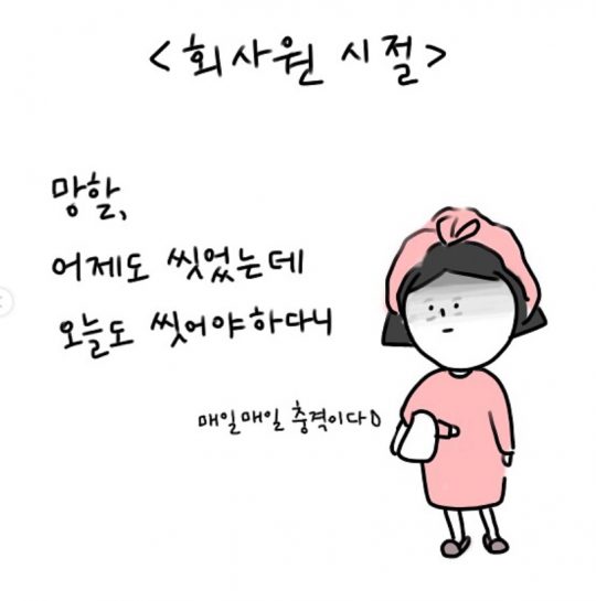 최: 하루에 하나? 빡세지 않나요?귀찮: 그래서 첫 콘텐츠는 엄청 간단한 걸로 시작했어요. 프리랜서가 되어서 좋은 점은 어제도 내일도 모레도 같은 옷을 입는다는 겁니다, 이렇게 5장 그려서 올렸어요. 그 후에도 진짜 일상에서 얻을 수 있는 생각을 간단하게 그려서 올렸어요. 캐릭터도 원래는 색깔 그려 넣고 그랬는데 나중에는 귀찮으니까 동그라미 하나만 잘 그려도 되는 거로 바꾸고… 한 3~4번째 되니까 좋아요가 한 160개씩 찍히더라고요. 어, 신기하다?