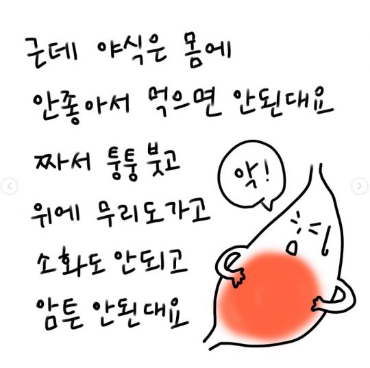 최: 엥? 왜죠?귀찮: 전 워낙 그리는 시간이 빨라서 10분 안에도 그려요. 한 번은 오랜만에 서울 출장 와서 친구들이랑 술을 마셨어요. 그러다 새벽 1시 되어서 숙소로 터덜터덜 걸어가고 있었어요. 서울에 더 이상 집은 없고, 에어비앤비 예약해 놨거든요. 남자친구랑 헤어진 지 한 5개월 되어서 되게 우울할 때였어요. 숙소 들어가서 카카오톡 쭉 보면서 전화할 사람 없나, 하는데 한 명도 없는 거예요. 되게 서럽더라고요. 그래서 숙소에서 울다가 콘텐츠 만들었어요. 히잉 너무 슬퍼, 이렇게 그렸는데 그게 또 좋아요가 많이 찍히더라고요. 나중에 친구들이 그랬어요. 너는 술 취해서 만들면 진짜 잘 만들어.