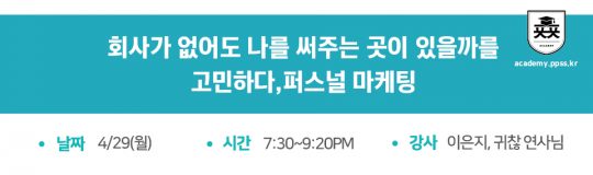 - 당장 오늘부터라도 실행할 수 있는 퍼스널 마케팅 방법에 대해 알아갈 수 있다.