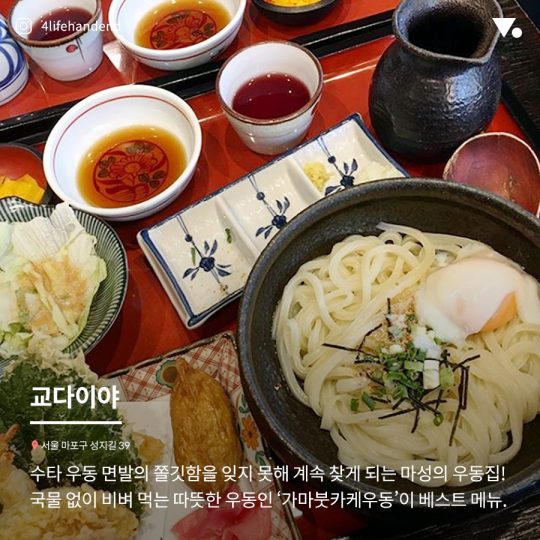 깊고 시원한 맛의 국물을 맛볼 수 있는 가케 우동으로 우동 본연의 맛을 느끼는 것도 좋지만, 국물 없이 양념 소스에 비벼 면의 탱글탱글함을 느낄 수 있는 가마붓카케우동을 맛보는 것도 추천해드립니다.