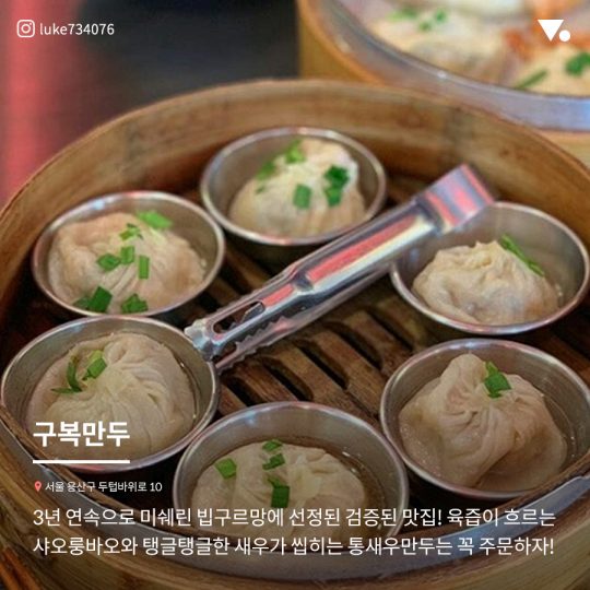 육즙이 가득 차 있다 못해 흐르는 수준의 '샤오룽바오'와 탱글탱글한 새우살이 씹히는 '통새우만두'는 꼭 주문해야 하는 메뉴. 5,000-7,000원 정도 가격이기 때문에 구복 전통만두, 통새우만두, 김치만두, 샤오룽바오 4가지 메뉴를 전부 다 시켜서 맛보는 것도 괜찮을 것 같죠?