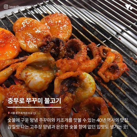 고추장 양념에 버무린 주꾸미와 키조개를 함께 주문해 지글지글 숯불 위에 구워내면 은은한 불 향과 감칠맛에 없던 입맛도 살아난답니다. 퇴근 후, 충무로 쭈꾸미 불고기에서 지친 심신을 달래보세요.