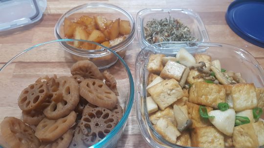 이날은 밥반찬이 떨어져 5종의 반찬을 만들었다. 캐슈넛을 넣은 멸치 볶음, 감자조림, 연근조림, 마약 계란장, 두부 버섯 조림. 마약 계란장은 한 번도 먹어보지 못했는데, 맛이 궁금했지만 먹진 않았다. 두부를 튀기듯 굽고 버섯과 함께 간장 베이스에 조림을 했는데, 고추가 없어 넣은 청양고추가 의외의 매콤함을 더했다. 최애 반찬으로 등극할 듯!