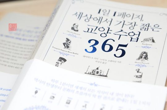 책은 역사 카테고리로 시작해서 문학, 미술, 과학, 음악, 철학, 종교 순으로 일주일 동안 다른 카테고리의 콘텐츠를 하루에 한 페이지 접할 수 있도록 구성되어 있다. 덕분에 책을 읽는 내내 한 분야에 대한 긴 이야기에 지쳐서 흥미를 잃는 일이 없었다.