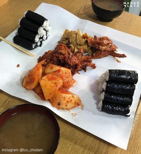 마약튀김 김밥과 조금은 특별한 계란말이 김밥이 맛있기로 입소문 난 곳이에요. 김밥 안에 튀김가루가 들어가 바삭바삭한 식감과 튀김의 고소함이 인상적인데요. 속이 느끼해질 때쯤 쫄면을 한입 먹으면 느끼함이 싸악 사라져요! 또한 계란말이 김밥은 김밥 속에 계란말이가 통으로 들어가 한층 더 부드러운 맛을 자랑해요.