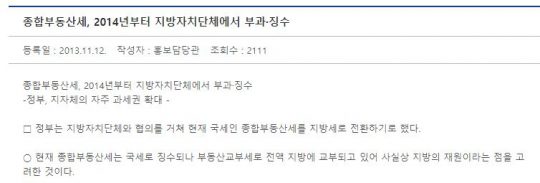 종합부동산세 자체가 원래 부동산 보유에 대한 조세부담의 형평성 재고와 지방재정 균형발전을 목적으로 만들어진 세금이다. 그래서 종부세는 전액 부동산 교부세라는 이름으로 지자체로 이전되게 되어있다. 특히 문재인정부 들어 인상된 종부세로 인한 추가 세수는 서민주거 재원으로 활용된다. 12.16으로 종부세 또 올랐으니 내년에는 좀 더 걷힐 텐데, 그건 그만큼 서민주거 재원이 늘어난다는 얘기기도 하다.