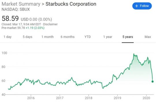 지금 스타벅스 주식을 사도 될까? 거의 5년 동안 보지 못했던 수준까지 하락해 있다.