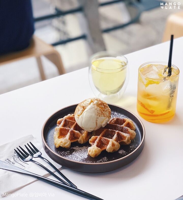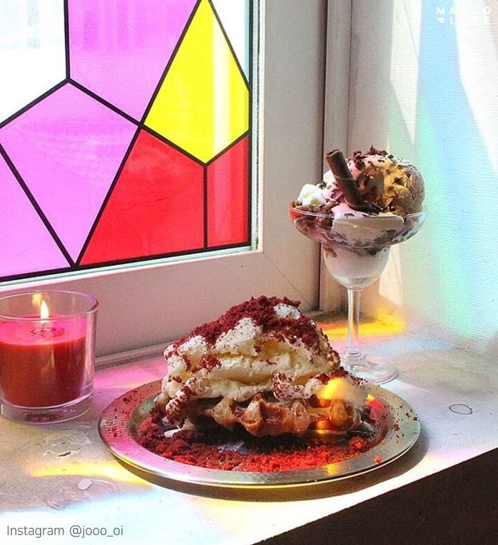 여기서는 레드벨벳 크로플을 맛볼 수 있는데요. 시원한 아이스크림 위에 레드벨벳 파우더가 올라가 마치 몽글몽글 티라미수를 먹는듯한 느낌이에요. 을지로에서 크로플을 찾는다면 베로나에 들려보세요!