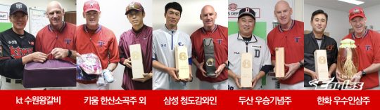 가는 와인이 고우면, 오는 것도 있는 법. 맷 윌리엄스 감독의 와인을 선물 받은 상대 감독들도 가만히 있을 수 없었다. 이강철 kt 감독은 답례로 지역 특산물인 ‘수원왕갈비’를 선물했다. 한국의 맛있는 정을 느낀 것이다. 그 날은 경기 기사만큼 왕갈비와 와인에 대한 기사로 훈훈함이 넘쳤다. 다음에 맷동님을 만나야 하는 감독들 빼고.