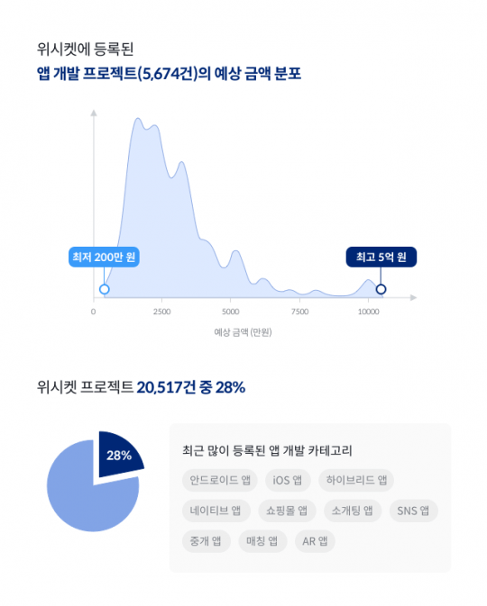 그래서 앱 제작 비용이 고민인 여러분께 도움이 될만한 정보를 정리해보았습니다. 위시켓 데이터를 바탕으로 앱 개발 비용을 공개하는 것은 물론, 가장 확실하게 여러분의 프로젝트 견적을 알 방법을 알려드릴 예정입니다. 개발 프로젝트를 성공적으로 시작하고 싶다면 지금부터 주목해 주세요!