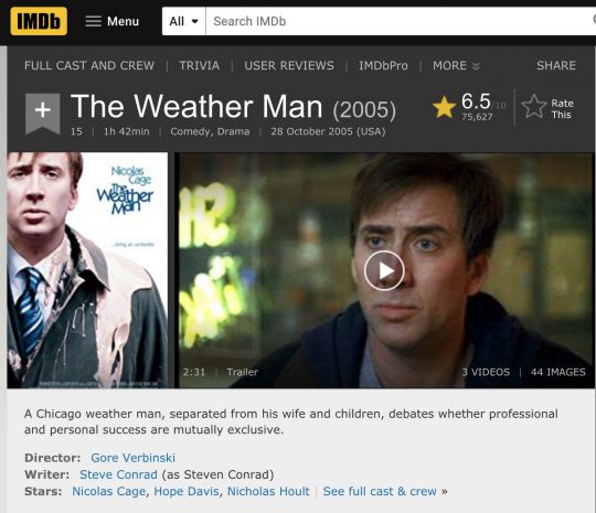우선 자신의 수준에 맞는 혹은 관심 가는 영화나 미드, 영드 등을 선택한다. 내용이 좀 뻔하더라도 쉬운 영화를 선택하기 바란다. 영상만 봐도 대략의 내용이 추론 가능해야 한다. 좀 오래된 영화이지만 나는 니콜라스 케이지 주연의 〈웨더 맨〉(2005)을 선택해 보았다.
