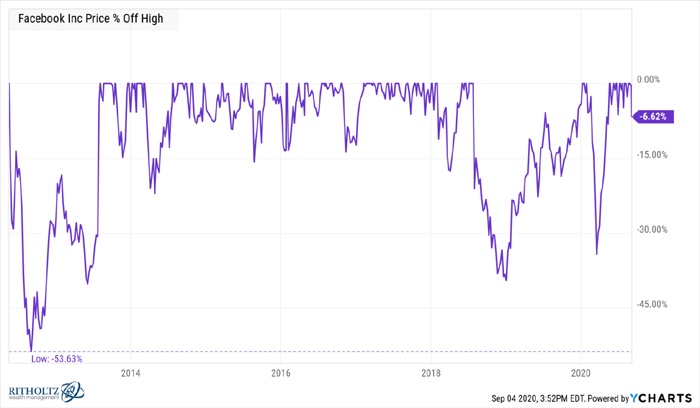 페이스북은 2012년 IPO 이후 600% 이상(연간 27%) 상승했다. 하지만 상장 직후 53% 폭락하는 등 이후 3차례에 걸쳐의 30% 이상 하락을 겪었다.