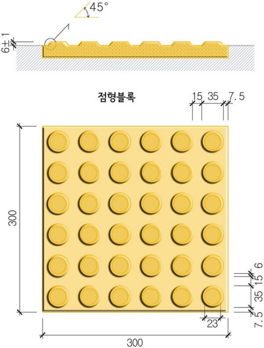 내 기억으론 엘리베이터와 건물 출입구, 화장실 입구 그리고 경사로 핸드레일에 점자 표지판을 부착했고 지상 건물 출입구 외부 바닥에 점자 블록을 설치했다. 점자 블록과 점자 표지판은 자재를 발주하기 전에 한 번 더 확인하긴 하지만, 기성품들은 기본적으로 지침을 준수해 제작되기 때문에 시공 과정에 큰 어려움이 없었다.