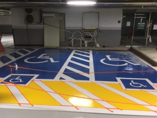 지하주차장은 공사가 비교적 단순했다. 공사면적은 넓었지만 하나의 주차구역을 반복하는 작업이었다. 장애인 편의시설 공사는 지하주차장 공사에 비해 까다로운 점들이 있었다. 하나의 화장실을 설치하더라도 그 안에 들어가는 변기와 휴지 걸이, 그리고 점자 표지판 등의 치수와 규격이 정해져 있고, 일일이 실측하는 꼼꼼함을 필요로 했다. 운동장처럼 넓은 지하주차장에서 줄자를 사용하는 시간보다 1평이 안 되는 장애인 화장실 안에서 줄자를 사용하는 시간이 많았다.