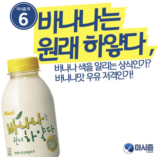 그동안 가공유 시장은 바나나맛 우유의 천지였기 때문이다. 우리는 당연히 바나나우유는 노란색이어야 한다는 편견에 빠져있었다. 그것은 단지 껍질이었을 뿐 알맹이는 하얀 색깔인데 말이다. 이 음료는 바나나에 대한 재고찰을 하게 만들어주었고, 더불어 상대인 ‘바나나맛 우유’를 저격하기도 했다.