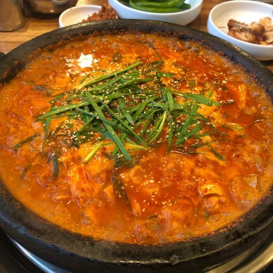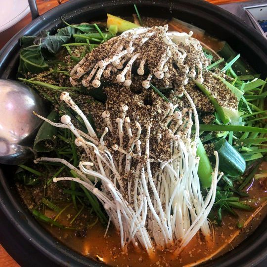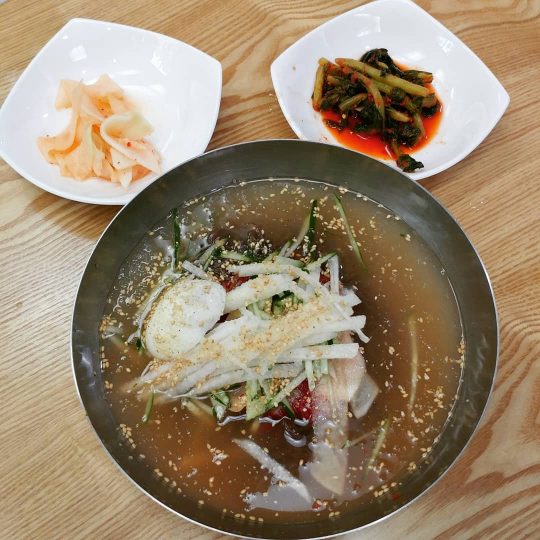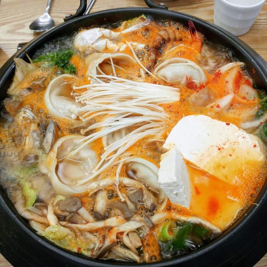 양념장이 풀어지며 보글보글 끓여진 국물은 해산물의 시원함과 채소의 은은한 단맛이 어우러져 깊은 맛을 자랑한다. 김치의 감칠맛이 살아 있는 만두와 깔끔한 뒷맛이 매력적인 북어 육수의 조합이 일품이다. 일반적인 칡 냉면보다 칡의 함량을 높여 풍미를 살린 ‘냉면’도 인기를 끈다.
