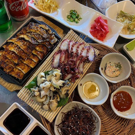 - 후기(식신 junhemi-12): 깻잎에 장어구이와 생강채, 고추, 와사비를 올려서 한입에 먹으면 등산의 피로가 풀어진다. 문어, 소라숙회도 같이 나오는 세트도 푸짐하니 좋아요.