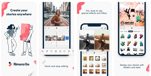필모라고는 놀라울 정도로 멋진 동영상을 만들 수 있는 동영상 편집 어플입니다. 잘라내기나 분할하기와 같은 기본적인 편집 기능들은 물론 대부분 갖추고 있죠. 그뿐만 아니라 뒤로감기와 빠르게 감기, 슬로우 모션으로 편집하는 기능도 있습니다.