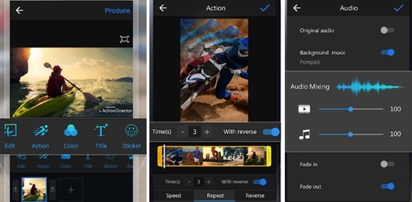 사이버링크(Cyberlink)에서 만든 액션디렉터에는 동영상을 편집하고 조절할 수 있는 기본적인 기능들은 대부분 갖추고 있으며, 인터페이스도 직관적입니다. 필모라고보다 뛰어난 점은 아주 선명한 해상도를 가진 4K 동영상을 편집하고 만들 수 있다는 것입니다. 동영상을 녹화하는 기능도 있고, 화면에 글자와 배경음악을 추가할 수도 있습니다. 또한 다양한 액션 효과를 이용해서 화면을 편집할 수도 있죠.