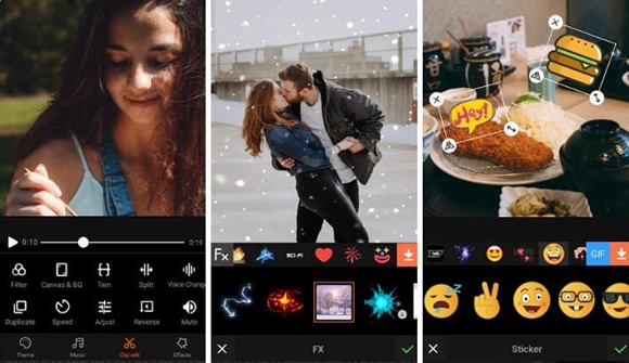 장점: 다른 앱들과는 다르게 하나의 동영상 안에서 다양한 레이어를 다룰 수 있음, 보이스 오버/음성변조/ 사운드 효과 등을 지원