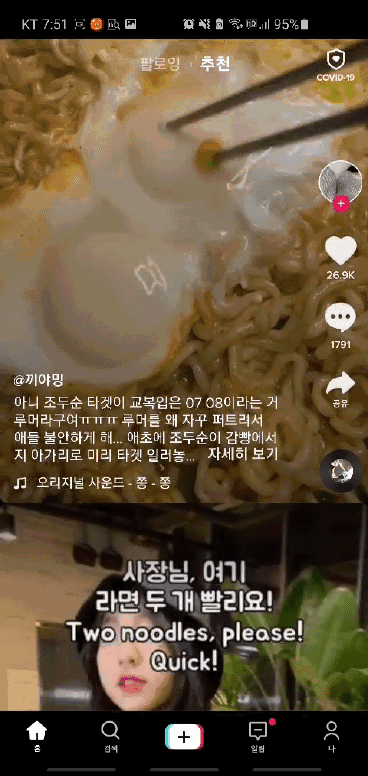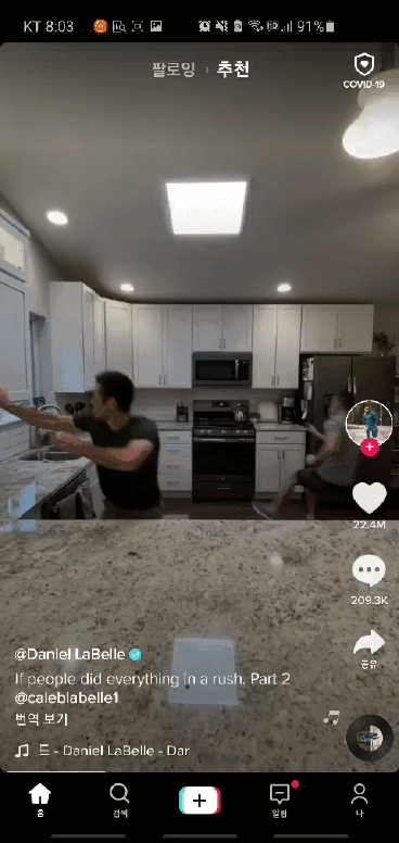 하지만 거의 1년을 쓰다 보니, 틱톡의 매력에 자연스럽게 빠지게 되더군요. 왜 심심할 때마다 틱톡을 틀게 될까요? 바로 '엄지' 하나로 모든 기능을 이용 가능하게 만들었기 때문이 아닌가 싶습니다.