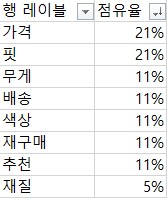 뭘 하려는지 감이 오시죠? 일단 저렇게 완료를 하시면 각 카테고리를 모두 규합해 피벗을 돌려 어떤 부분에서 고객들이 만족하는지 파악해봅니다.
