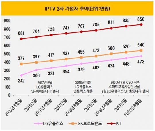 그런데 반전이 일어난다. 넷플릭스 효과로 유플러스가 엄청난 성장세를 보인 것이다. 이렇듯 상황이 바뀌면서 이번 디즈니 플러스 진출에는 역으로 통신사들이 적극적인 구애를 펼친다. 결국 KT와 유플러스 두 곳과 모두 제휴를 맺을 것으로 예상되는데, 아마 디즈니에게 엄청 후한 조건으로 계약을 맺을 것이 뻔해 보인다.이렇듯, 통신사의 전성기는 과거의 일이 되어 버렸다. 사실 여전히 이러한 제휴는 당장의 가입자 수 확보에나 도움이 될 뿐, 장기적으로는 제 살 깎아 먹기가 될 것이 분명하다. 넷플릭스와 디즈니 플러스를 사용하는 고객이 굳이 통신사의 IPTV를 이용할 필요가 없기 때문이다. 그렇기에 통신 3사 중 하나인 SKT는 이번 제휴에서 빠지지 않았을까?