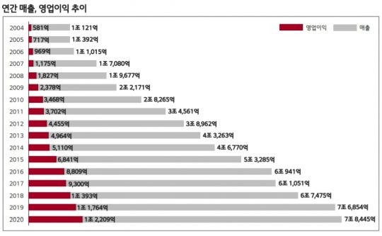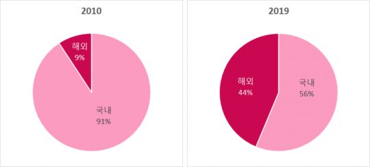 그 노력의 결과 화장품 사업의 해외 매출은 2010년 9%에 불과하던 것이 2019년 44%까지 증가하며 화장품 사업의 글로벌화를 향해 성큼성큼 나아가는 성과를 거뒀다.