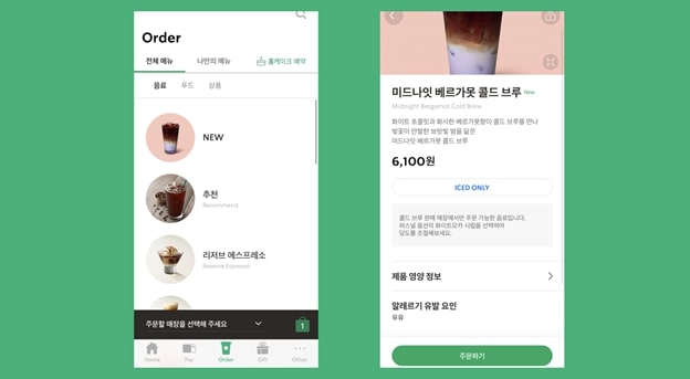 스타벅스 앱의 리뉴얼을 두고 의견이 다양한 것은 사실이지만, 개인적으로는 사용성이 크게 개선되어 쓸데없는 동선이 줄어든 점이 흡족했다. 스타벅스처럼 전 세계적인 프랜차이즈의 경우, 앱을 설계할 때 준수해야 할 가이드라인이 상당했을 텐데도 기존의 아이덴티티를 크게 잃어버리지 않으면서 고객의 사용 여정을 개선한 점에 박수를 보내고 싶다. 메뉴 선택부터 주문, 결제의 과정이 이토록 쾌적해졌다는 것만으로도 사실 꽤 만족스럽다.
