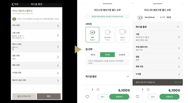 리뉴얼된 스타벅스 앱은 상당히 유저 친화적이다. 나의 경우, 오래전부터 스타벅스를 이용해온 가장 큰 이유는 커스텀 때문이었다. 커스텀을 이용하는 목적은 단순히 음료의 취향 때문일 수도 있지만, 식습관 또는 알레르기와 연관이 있을 확률이 높다.