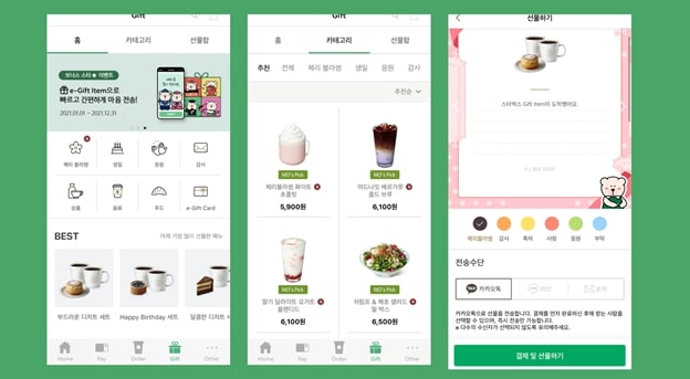 같은 ‘선물하기’ 기능이라도, 카카오톡을 통해 아이템이 판매되는 것보단 자체 앱을 통해 판매되는 것이 훨씬 이상적이다. 사용자의 리텐션도 높일 수 있고, 별도의 수수료도 없을 테고, 무엇보다도 사용자가 스타벅스 카드를 충전·사용하게끔 유도할 수도 있다.