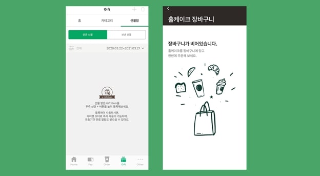 이전부터 있었던 기능이기는 하지만, 이제는 하단 내비게이션 바의 한 자리를 떡하니 차지해 버렸다. 기존에 ‘이런 기능이 있는지 미처 몰라서’ 카카오톡 선물하기를 통해 스벅 아이템을 선물했던 고객 중 일부는, 어쩌면 스타벅스 앱으로 전환되지 않을까 하는 막연한 기대도 해본다.